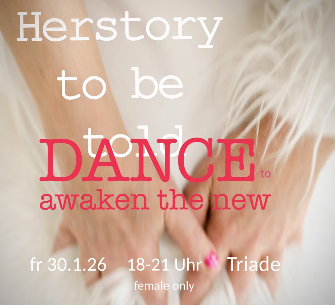 Herstory to be told – DANCE Awakening to the new Freitag 30. Januar 18:00 – 21:00  Uhr Triade, Hamburg   AWAKENING TO THE NEW In dieser Session widmen wir uns dem Erwachen. Dem Erwachen zum Neuen. Zum nächsten Schritt. In einen neuen Seinszustand. Unser Körper, unsere Sinne und unser Geist können in
